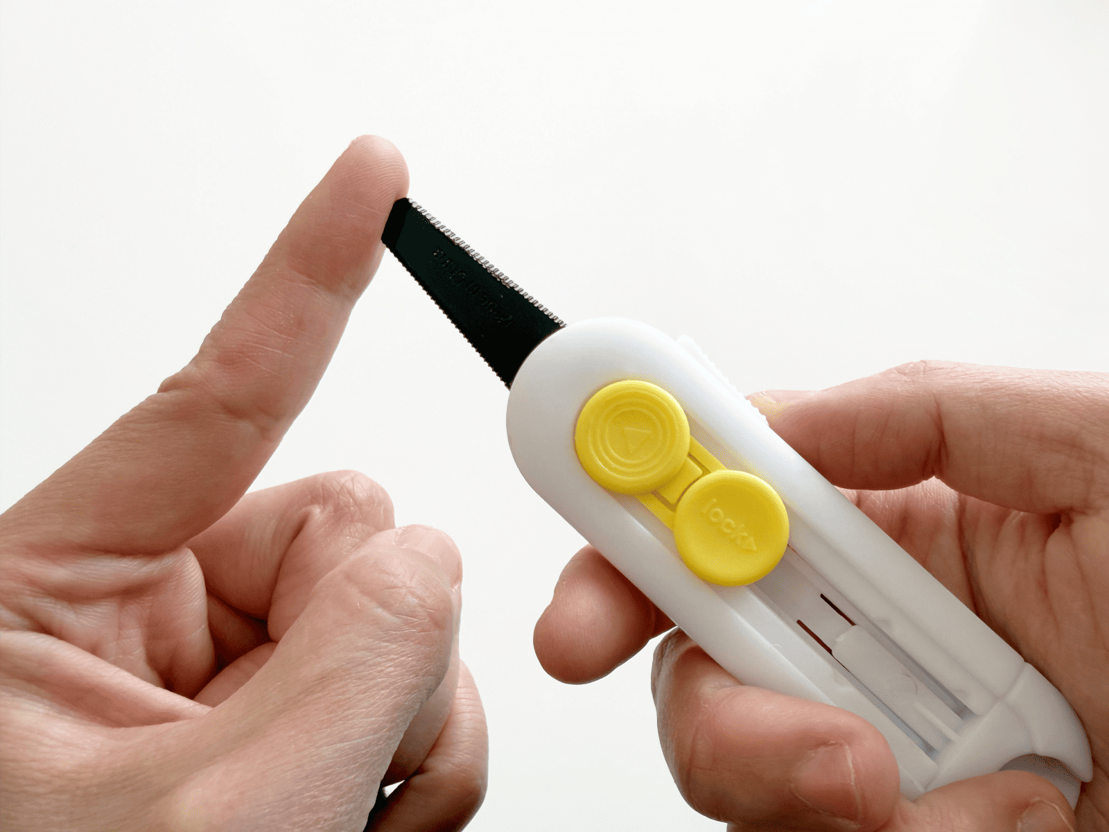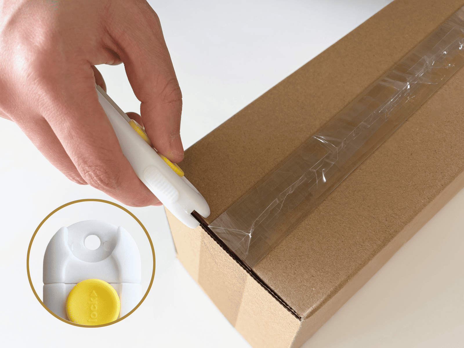 택배가 도착하면, 안전하게 개봉하세요. 칼날 고정 잠금 버튼과 끝부분 라운딩 처리로 안전합니다. 고리와 자석으로 사용하기 편리한 곳에 보관할 수 있죠. 후면부에 레이저 인쇄를 통해 로고 등을 드러낼 수 있습니다.