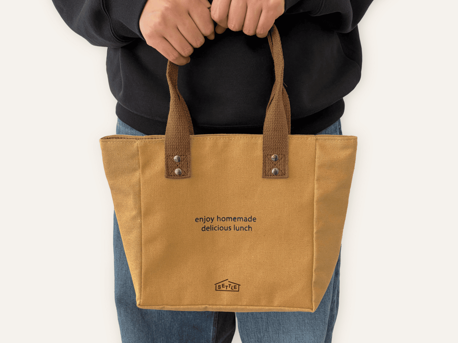 한 끼 식사를 책임져주는 런치백입니다. 안감 보강과 내부 지퍼로 내용물을 위생적으로 보관할 수 있습니다. 가벼운 무게와 휴대하기 좋은 사이즈라 간편한 도시락이나 간식등을 담아 다양한 상황에 활용할 수 있죠. 전면 하단 인쇄로 로고나 브랜드 슬로건을 선명하게 표현하여 실생활에서의 자연스러운 브랜딩을 경험해보세요.