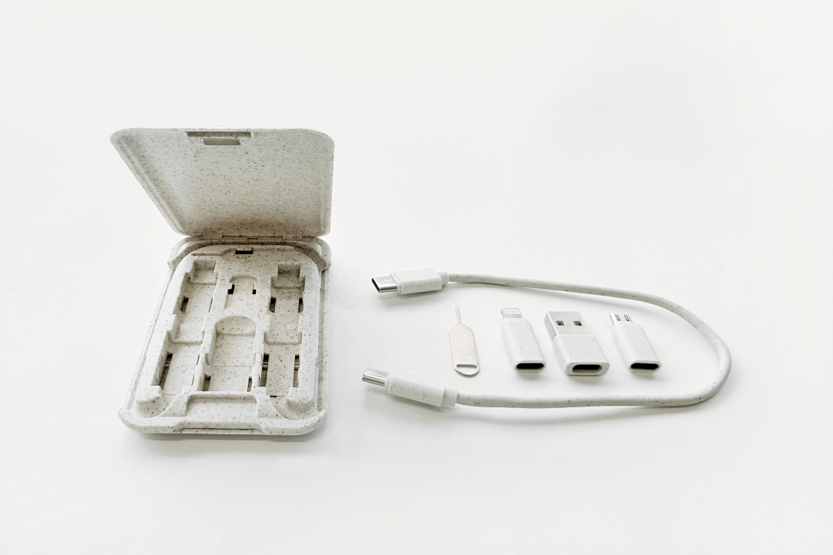 생분해 성분으로 케이스와 부자재를 구성한 에코 케이블 키트입니다. 자연스러운 티 끌 텍스처에 호환성 높은 C to C를 포함한 다양한 케이블 4종, 유심핀, 유심보관 공간을 한데 모아 실용성이 좋습니다. 또한 케이스 뒷면의 지지대를 열어 세우면 스마트폰 거치대로 활용할 수 있습니다.